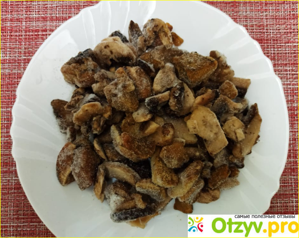 Это было похоже скорее на кусок несвежего мяса, чем на нарезанные грибы. Отвратительно выглядит, еще хуже пахнет – протухшей морозильной камерой. Разлепить все это не удалось. Даже через минут 10 размораживания ничего не произошло. Они просто отказывались размораживаться. Чуть-чуть с них накапало водички и все.