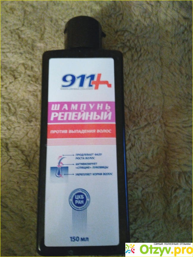 Привлекла упаковка в аптеке, с цифрами 911, под ними надпись - "Ваша служба спасения", производитель Твинс Тэк. Обычный флакон, объемом 150 мл. Консистенция чуть жидковатая, цвет прозрачный, запаха репейного нет, просто приятный нейтральный запах. На волосах потом не держится, мне это нравится. Мою несколько раз в неделю, вот уже 3 месяца. За это время заметила положительные изменения.
