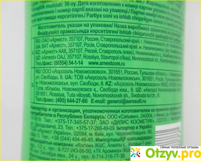 Изготовитель: ООО "Аэрозоль Новомосковск" (Россия).