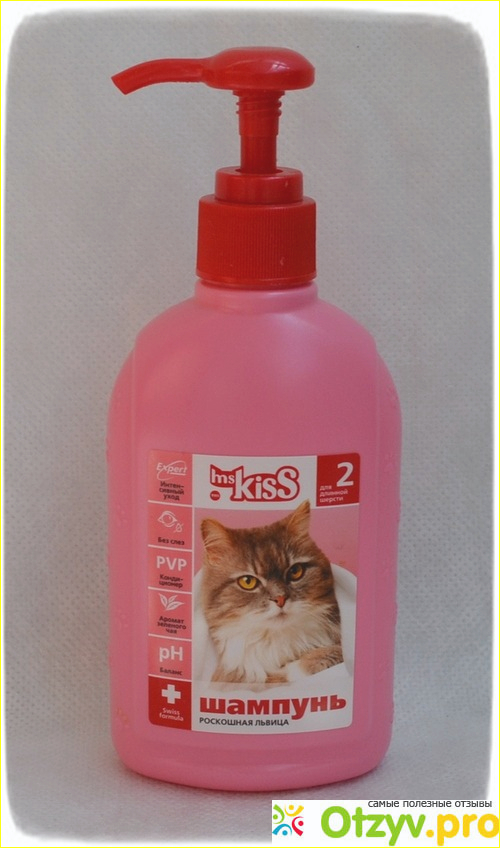 Например, шампунь-кондиционер Ms.KISS Роскошная львица, который можно купить в обычном супермаркете в отделе товаров для животных.
