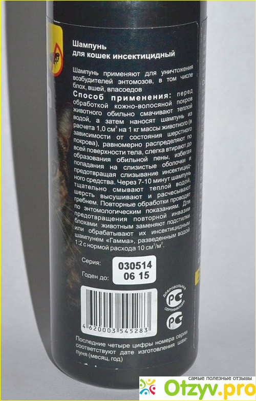 За много лет я уже перепробовала массу всяческих дорогих и не очень шампуней от кожных паразитов, но самым своим любим без колебаний могу назвать инсектицидный шампунь для кошек «Гамма» производства ООО «Веда», что за копейки продается практически в любом зоомагазине.