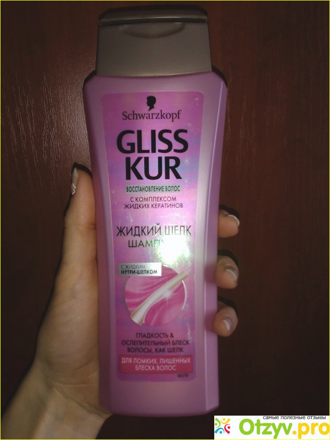 Называется шампунь Глисс Кур Жидкий шёлк Восстановление волос. Выглядит данный шампунь следующим образом.
