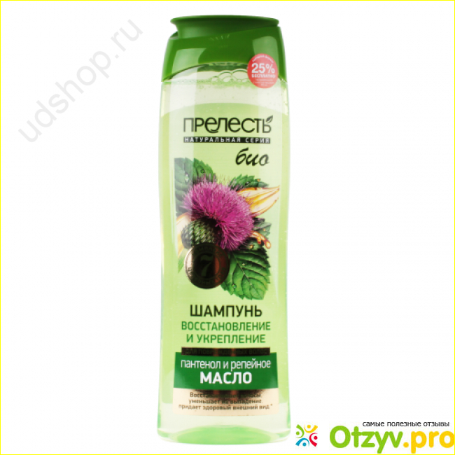 Забежав в ближайший магазин и не увидев ничего из знакомых наименований шампуней, взяла первый попавшийся, им как раз и был шампунь для волос «ПРЕЛЕСТЬ BIO» восстановление и укрепление с репейным маслом и пантенолом.