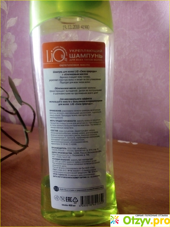 Предлагаю вашему вниманию шампунь для всех типов волос LiQ "Сила природы" с облепиховым маслом. Производитель обещает, что благодаря этому средству по уходу за волосами кожа головы будет бережно очищаться, структура волос будет укрепляться. Также производитель уверяет в питательном эффекте данного шампуня для волос.