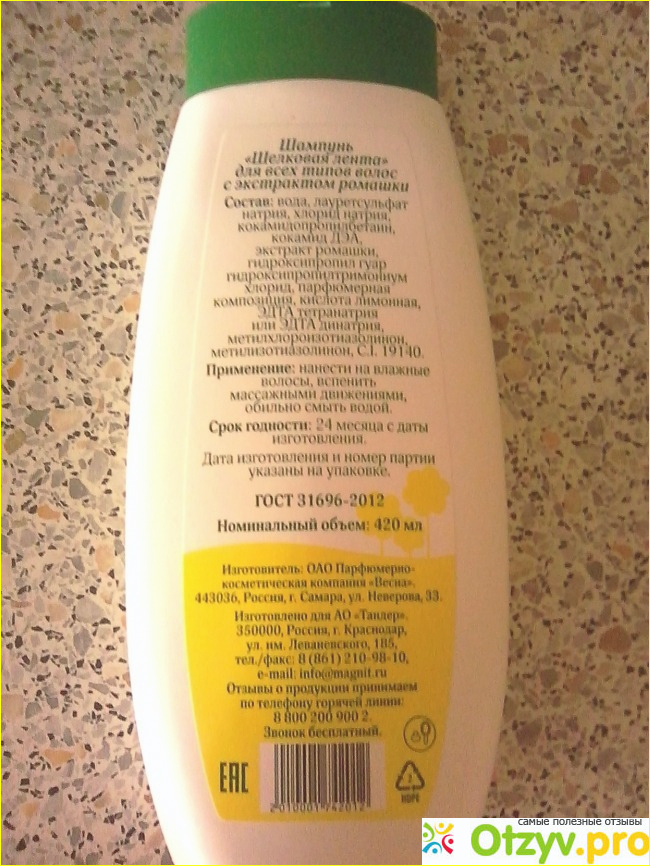 Шампунь конечно не идеальный. В составе много чего присутствует. Указан ГОСТ. Это плюс. Срок годности 2 года, как у всей продукции фирмы"Весна".