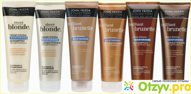 Конечно же, шампуни от Джон Фрида стоят на порядок дороже, чем общедоступные Шаума или Нивея. Их не найти на полках обычных супермаркетов, но тем не менее спрос на них определенно существует. В линейке представлены средства: