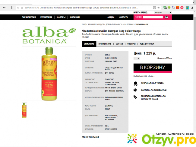 Шампунь производства Alba Botanica Hawaiian Shampoo Body Builder Mango это прежде всего натуральный шампунь, органический шампунь от американского производителя Альба Ботаника, так что просто идеально подходит для моих проблемных и капризных волос, потому то его мягкая и нежная пена очень деликатно очищает корневую часть волос, при этом не нарушает родного баланса, так что даже не сушит мне всю длину. Из положительного так же в применении такого средства могу отметить и то, что после него волосы у меня больше сохраняют свой свежий и ухоженный вид, так что длительное время могу себе позволить волосы не мыть.