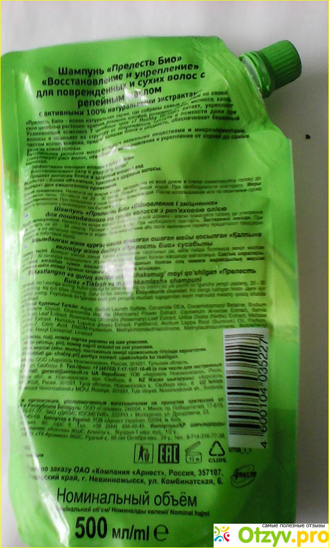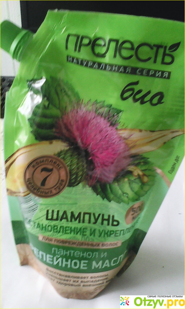 С удовольствием представляю Шампунь " Прелесть Био" " Восстановление и укрепление" Для повреждённых и сухих волос! Он содержит репейное масло. Его производитель ООО " Аэрозоль Новомосковск"