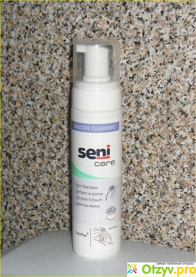 . Итак, в наших аптеках недавно появилась пенка-шампунь от Seni. Как уверяет производитель, теперь можно помыть голову больному без участия воды. Конечно, я ее купила.