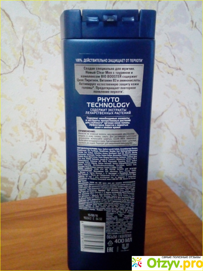 Месяц назад остановили свой выбор на шампуне против перхоти CLEAR MEN. Флакон объёмом 400 мл., поэтому хватает его надолго. Это новая формула с экстрактами лекарственных растений и таурином. Кроме этого шампунь содержит цинк, витамин B3 и ещё кое-какие добавки.