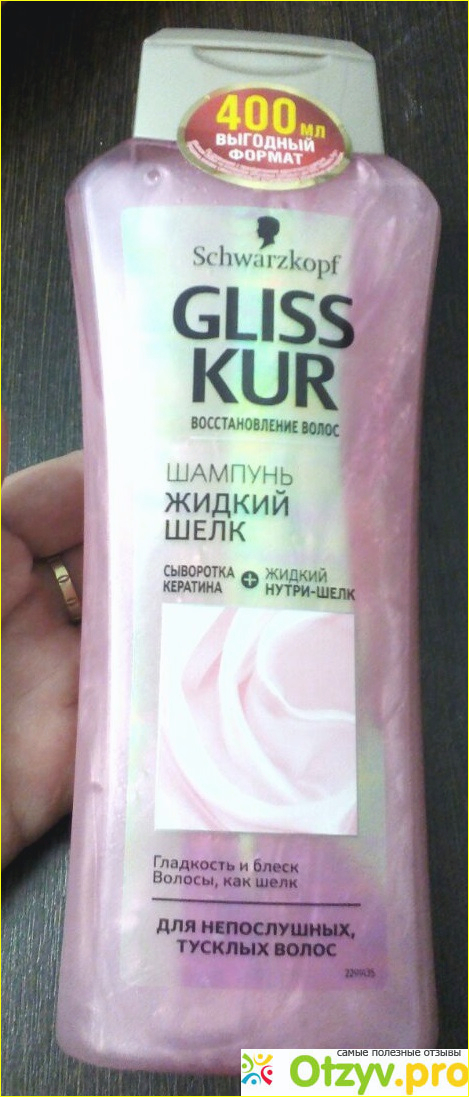 В этот раз взяла на пробу шампунь Жидкий шелк от Глисс Кур, цена около 200 рублей в сетевом магазине - на мой взгляд цена хорошая. Запах приятный, расход небольшой и при этом волосы в данном случае более суток остаются чистыми.