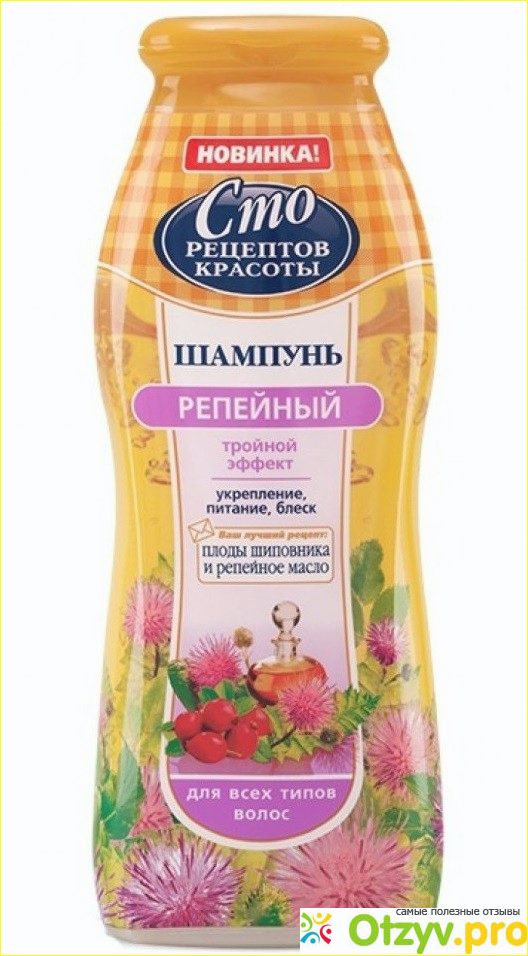 Шампунь сто рецептов красоты репейный 2 в 1 с эффектом бальзама.