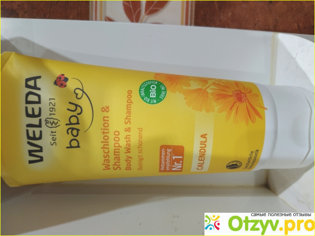 Для новорожденных достаточно трудно подобрать гигиенические средства по уходу за кожей. Косметику подбирала с органическими ингредиентами, так как есть опасность аллергии. Моему сыночку исполнилось 10 месяцев, детским шампунем для волос и тела Weleda baby с календулой пользуемся с самого рождения, нравится консистенция и запах, никаких аллергических реакций замечено не было.