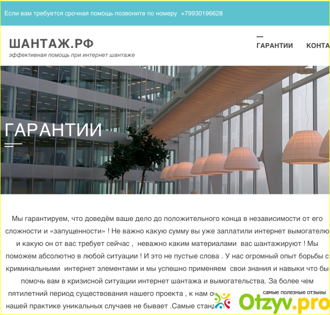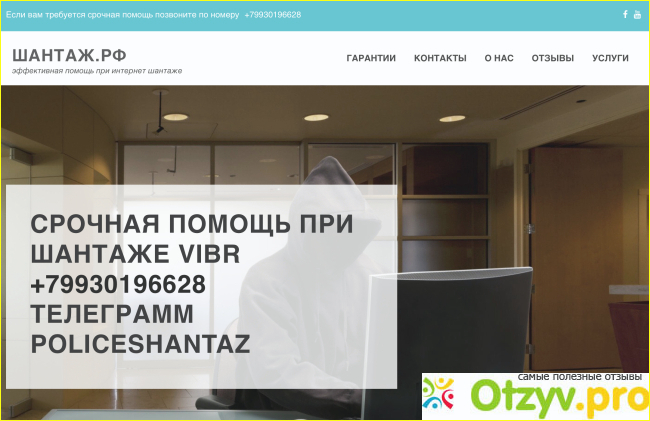 Тут понял что прилип крепко. Начал искать помощь в интернете. Через хорошего знакомого вышел на сайт шантаж. рф позвонил по телефону и получил хорошую развёрнутую консультацию по своей проблеме. Уже через пол часа вымогатель ретировался и больше не писал мне и не звонил. Сожалею что раньше не обратился на сайт . Столько бы сил и денег сэкономил.