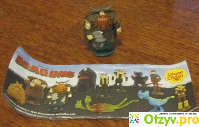 Внутри шара находится прозрачная капсула-яйцо с игрушкой-сюрпризом и красочная бумажка-вкладыш, с изображением всех фигурок этой серии. Здесь и Громильда, Беззубик, Сарделька, Двуголовастик и многие другие. Игрушки достаточно яркие и красочные. Год выпуска серии - 2016.