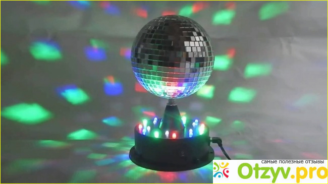Шар работает просто отлично, светит ярко, лучи по всей комнате. Цветные лампочки расположенные на подставке шара, отражаются в его зеркальной поверхности и отражаются от стен комнаты, разными цветами. Так что, смотрится это просто волшебно и очень необычно. Ставить его лучше всего в центр комнаты, если это возможно конечно. Ну и потолок должен быть белый или однотонный. От нашего натяжного, глянцевого потолка, световые лучи отражаются просто замечательно. Шар как бы, прокачивает светом нашу комнату, площадью в двадцать квадратных метров.