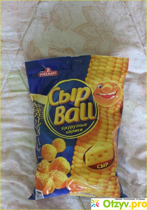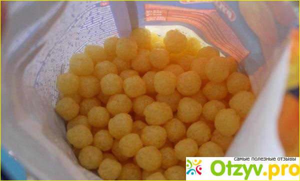 Вот как выглядит упаковка. Яркая красочная картинка - все привлекает внимание. Какой ребенок устоит перед такой вещью? Производители веселого дизайна только что показали, что шарики действительно сделаны из сыра и кукурузы. Так ли это?