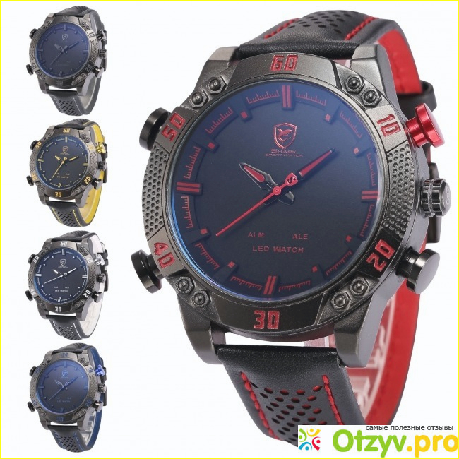 Компания Шарк-известный производитель часов. Я остановилась на этом варианте еще и потому, что механизм этих часов изготовлен именно в Японии, а не в Китае, как большинство других часов на современном рынке. А все мы знаем, что Япония-лучший производитель цифровой техники и все вещи, сделанные в Японии очень качественные. И на самом деле, часы выглядели даже лучше, чем на фотографии на сайте! У них надежный , стильный кожаный ремешок, который как раз и есть элементом классического стиля. Ремешок имеет удобную и надежную застежку, которая не ощущается и не мешает, размер ремешка очень легко регулируется. Корпус часов изготовлен из нержавеющей стале-это очень прочный и надежный материал. Стекло часов не простое, а противоударное, оно выдержит даже очень мощный удар и любые виды механических воздействий. Поэтому эти часы удобны для занятий спортом. Кроме того они водонепроницаемы, в них можно даже плавать и не бояться повредить механизм водой. Уникальность дизайна этих часов состоит и в том, что они имеют привычный для классических часов механизм с циферблатов, но кроме этого в них есть цифровой дисплей и подсветка, который тоже показывает время, если нажать на кнопку, это очень удобно, если вы идете поздно вечером домой и хотите посмотреть время. Моему мужу очень понравился такой подарок. С этими часами он чувствует себя очень уверенным в себе и активным мужчиной. Он их носит постоянно. Один раз он ради эксперимента даже попробовал принять в них душ, и , как мы и ожидали, часы не повредились и работают отлично.