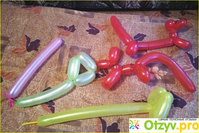 О шариках: розовые, красные, зелёные и желтые. Длина полностью надутого шарика почти метр, учитывая то, что он изгибается. Некоторые ШДМ (то есть шарики для моделирования) внезапно лопнули при накачивании. Но это было и другими шариками, которые покупались отдельно позже по 5 рублей за шарик (опт 450 рублей за 100 шариков). Качество их схожее.