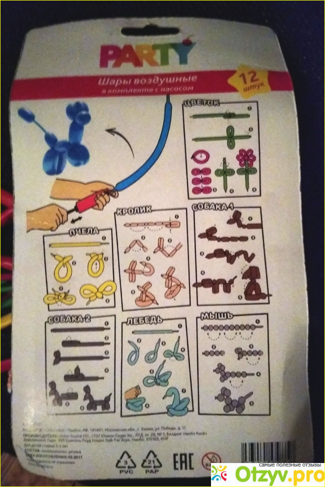 Дочка с удовольствием делала собак по видео из интернета. Также позже пытались делать банты и цветы. О насосе. Он меня разочаровал. Он в получился для нас 29 рублей (89 рублей набор минус шарики 12*5 = 60 рублей). Накачивает хорошо. Только качать нужно без остановки до нужной наполняемости шарика воздухом иначе он начнёт сдуваться или может деформироваться.