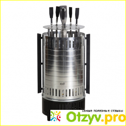 Изделие сделано таким образом, что при включении начинает равномерно вращаться. То есть шампура вращаются вокруг своей оси. А нагревательный элемент, который находится в центре, греет мясо и постепенно его готовит. Получается что все ингредиенты приготавливаются одинаково.