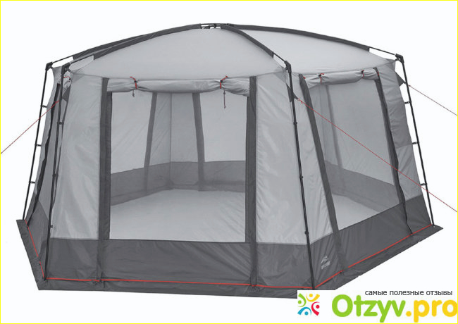 Это складное помещение, в котором свободно может поместиться до 15 человек, при этом — за довольно большим столом. Такая огромная палатка — может помочь не только организовать стол на пикнике или на даче, но, также, при необходимости — послужить укрытием от дождя или солнечного света.