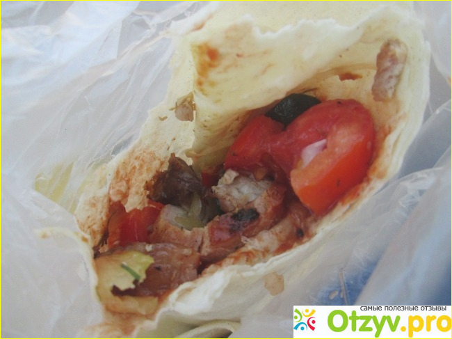 Начинка - огурцы, помидоры (странное , кстати, сочетание, никогда так сам не готовлю), мясо, соус, майонеза нет