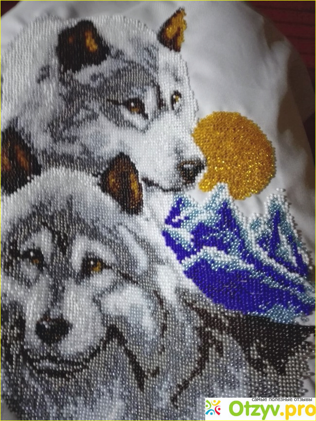 Бисер в наборе очень качественный чешский, схема на атласе на темном фоне четкая, ниточки для вышивки бисером, не титановские, но всеравно хорошие для вышивки картины пойдет, иголочка тоже хорошая. Волки вышивала легко, ровно 3 недели в день по 2-3 часа было на вышивку. Волки вышивала в паре, так как по приметам вышивки, волки охраняют семью, верность и если человек одинок и ему сделать подарок картины Волков в паре то это ему пророчит встретить вторую половинку. Очень много примет в вышивке, что не в коем случае нельзя, чтоб волк или другое животное было вышито не в паре и на картине одинок, так как такая оформленная картина в доме, символизирует одиночества. Очень много примет в вышивке животных. Вышивка таких картин бисером можно в одну нитку, так как картина, это не одежда и она будет висеть на стене . В процессе работы обращайте пожалуйста внимание, на то как вы стягуете схему, чтоб ваша работа при натяжки картины на подраммник не перекосилась. Картину в рамке можно под стекло, а можно оформлять без стекла. Также можно вставить паспорту при оформление если фон белый и не зашивается полностью бисером и требует паспарту. Вот мои Волки которые я вышивала бисером: