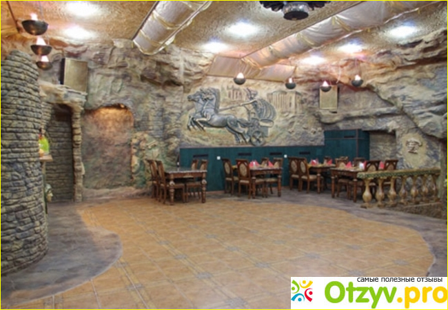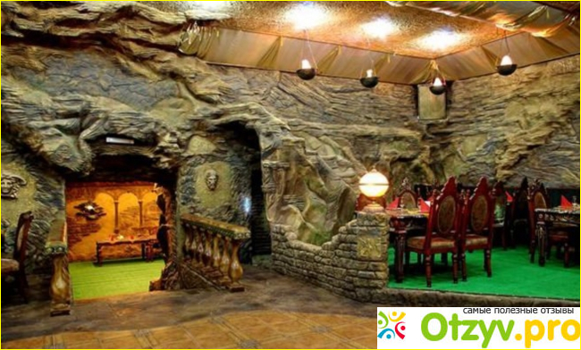 Там на самом деле довольно таки уютно. Хоть и вход совсем скромно выглядит, да и смотрится пещерой по сравнению с общим антуражем развлекательного комплекса Орсини Хаус, но внутри очень даже ничего. Попадаешь будто в грот какой-то — стены отделаны под камень, можно пройти в небольшие комнатки, (мы, кстати, так и сделали), а можно занять стол в общем зале. Столы, к слову, очень большие, прямо будто бы созданы для обильных застолий в большой компании. Так, здесь будет уместен какой-то банкет, фуршет, да в принципе любое мероприятие с последующим обильным застольем.