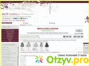 Сайт "Шей сама" отличный сайт, имеет большой объем полезной информации, которая распределена по соответствующим разделам и категориям. Имеет удобную навигацию, много иллюстраций, схем и таблиц, которые помогают быстро разобраться в тексте. В сайте также можно найти видеоинформацию и список литературы. Можно оценить этот сайт как сайт для самых разных пользователей, независимо от опыта и возраста.