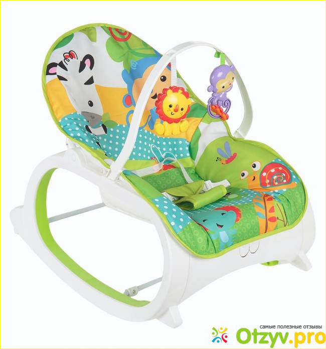 4. Подвесные игрушки. Такие игрушки есть практически в каждом шезлонге. Это скорее приятный бонус к покупке. Когда малыш становится постарше (около трёх месяцев), он с удовольствием с ними начинает играть.
