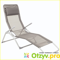 Рассчитан на средний вес до 100 кг, так что загораем только мы с сыном, а я еще иногда и дома его раскладываю. Раскладывается просто, надо откинуться назад и готово, в начале это страшновато делать. Релакс обеспечен, если комары не заедят. Немного не нравятся поручни, но привыкла к ним.