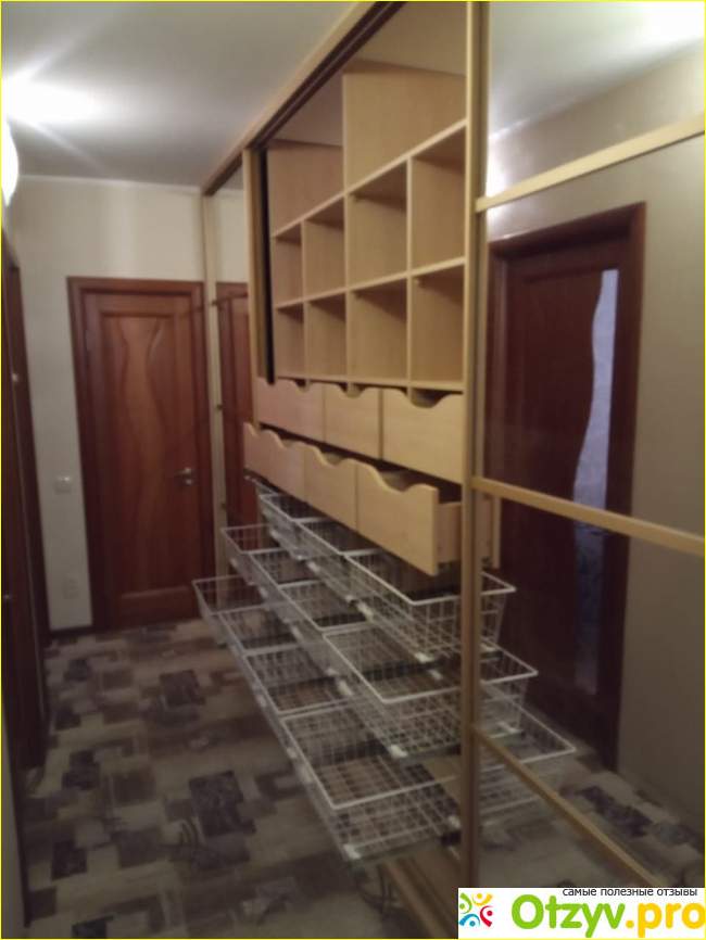 Изделием довольны, шкаф получился красивым, вместительным, все вещи прекрасно влезли. Менеджер отзывчивый, приятный, держит в курсе всех событий по заказу, замерщик попался опытный, помог с выбором материалов, подобрал нам дизайн, сделал эскизный проект. Все хорошо, но был небольшой казус на этапе доставки, разбилось стекло у дверцы купе.