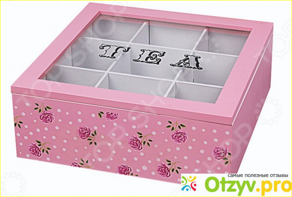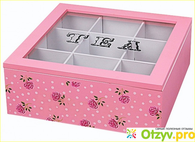 Чем она может зацепить и понравиться самым простым людям, а именно своим внешним видом, она очень нежная, красивая и праздничная, ее всегда будет приятно держать на столе, когда решишь попить чай в одиночестве или наоборот большой дружной семейной или в компании подруг, так как она предаёт некоторое удовольствие глаза и внешнего облика. А самое главное чай порционно может быть разложен в этой шкатулке, что может многих сильно заинтересовать.