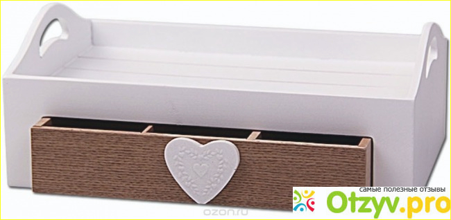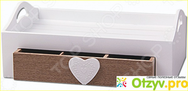 У меня вообще верхний фасад самой мебели выполнен в белом цвете по этому эта шкатулка очень хорошо сочетается с ней. Основа у шкатулки выполнена в белом цвете, а вот сам выдвижной ящик у нее имеет темно-коричневый цвет. А как раз благодаря тому что на выдвижной ящике еще находится сердечко. которое так же выполнено в бело цвете сама шкатулка приобретает воздушность и легкость. Само же сердечко еще не много обычное белое, а оно имеет еще небольшой красивый и еле заметный рисунок.