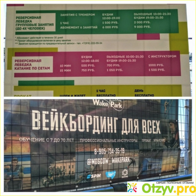 На ограждении появилось расписание работы вейк-парка и прейскурант на предоставляемые услуги. Цены высоковаты, как мне показалось, но видимо, это удовольствие того стоит.