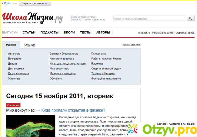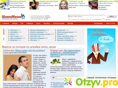 Журнал онлайн школа жизни сделан очень грамотно разбит на рубрики и под касты. Данный журнал вмещает в себя и статьи и комментарии, и видео обзоры, а также постоянно дополняется и обновляется и также сайт сам не редко проводит конкурсы в которых можно по участвовать желающим.