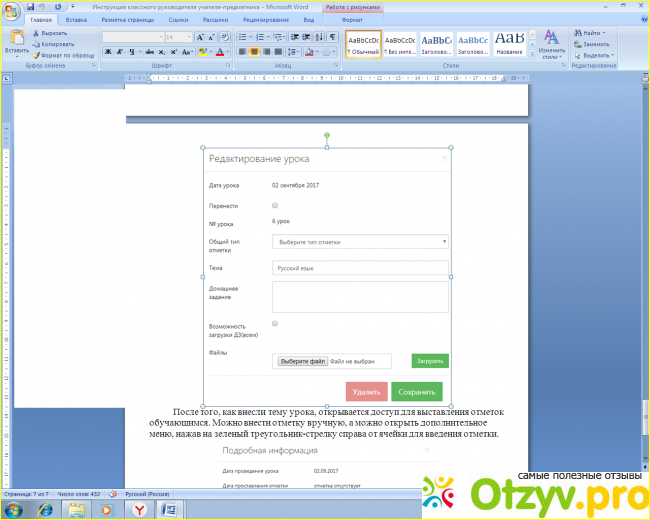 В журнале есть интересные нововведения, например, можно отметить на сколько опоздал тот или иной ученик, указать форму урока и за что именно поставлена оценка. Кроме того, можно сразу отправить письмо родителю.