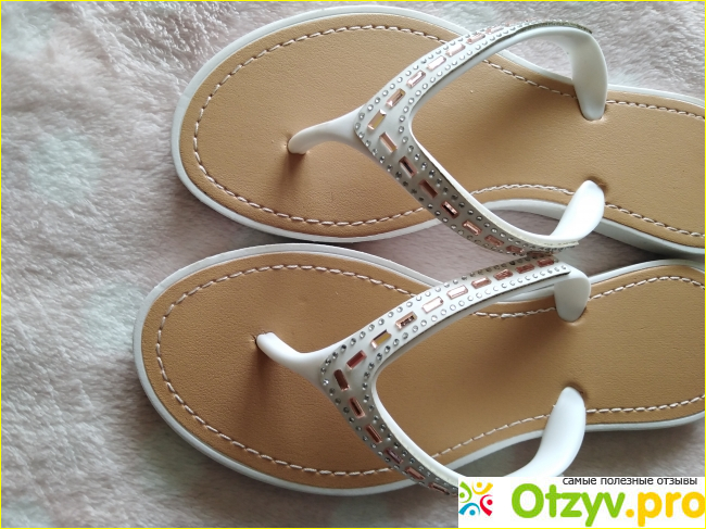 Сланцы удобно мыть, между пальцами не натирает. Идет в размер. На мой 37 подошли идеально. Декоративная фурнитура крепкая, за время использования, а это более 2-х непрерывного ношения, ничего не отвалилось и не порвалось. Хватит и на второй сезон.