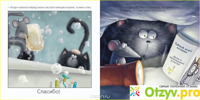 Так же рассказывается о мышонке - Сырнике. Ведь именно котенок Шмяк, смог нарисовать и описать в книге, в чем заключается истинная дружба, все это он сделал лишь для того, чтобы развеселить своего питомца Сырника. Да -да поверьте, дружба может быть между котенком и мышонком, невзирая ни на что, даже на преграды которые могут между ними стоять. В данной книге Шмяк говорит слова благодарности(спасибо), своему другу Сырничку. Спросите за что? Да за то, что он есть самым лучшим другом на свете. Вот такую замечательную книгу я взяла своим деткам и очень этому рада, так как она не заменима в развитии детей, так же помогает прививать очень хорошие качества.