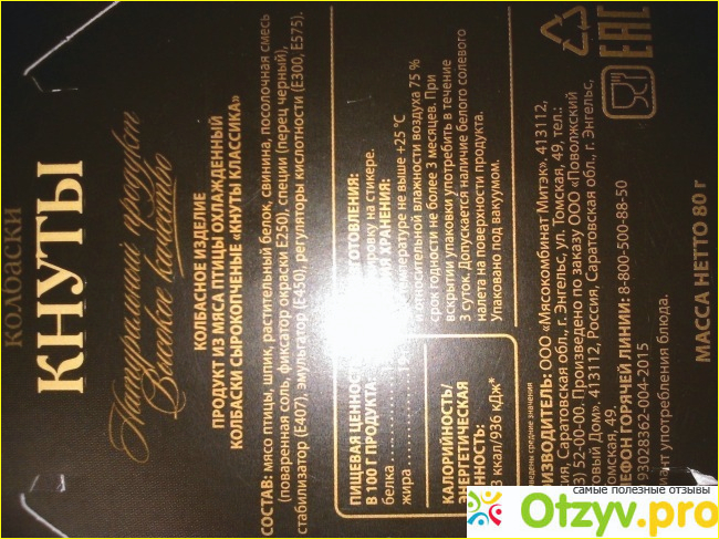 Упакованы эти колбаски стильно, в жёсткий полиэтилен, а вверху и внизу картонная упаковка в чёрном цвете. Сами колбаски тонкие и каждая упакована индивидуально в еле заметную плёнку, которую, кстати, очень трудно снять. После чистки все руки в жиру. Колбаски настолько жирные, что жир с них просто течёт в прямом смысле слова, и остается под ними. На вкус обыкновенная копчёная колбаса, только очень жирная и твердая. Сделаны они из мяса птицы, шпика, растительного белка, свинины и кучи всякой химозы, одних Е-шек 5 штук, состав на фото говорит сам за себя. В общем, лучше это не есть вообще, здоровее будете. Если уж хочется чего-то копчёного, лучше купить нормальной копченой колбасы. Кстати, цена у этих шеллеров тоже немаленькая - 100р за 80г, поэтому дороговатая отрава выходит. Производит Саратовская область, город Энгельс, мясокомбинат Митэк. Ну а мы с мужем их просто выбросили и не стали портить свои желудки. Плюсы, к сожалению, поставить не за что, ставлю единицу.