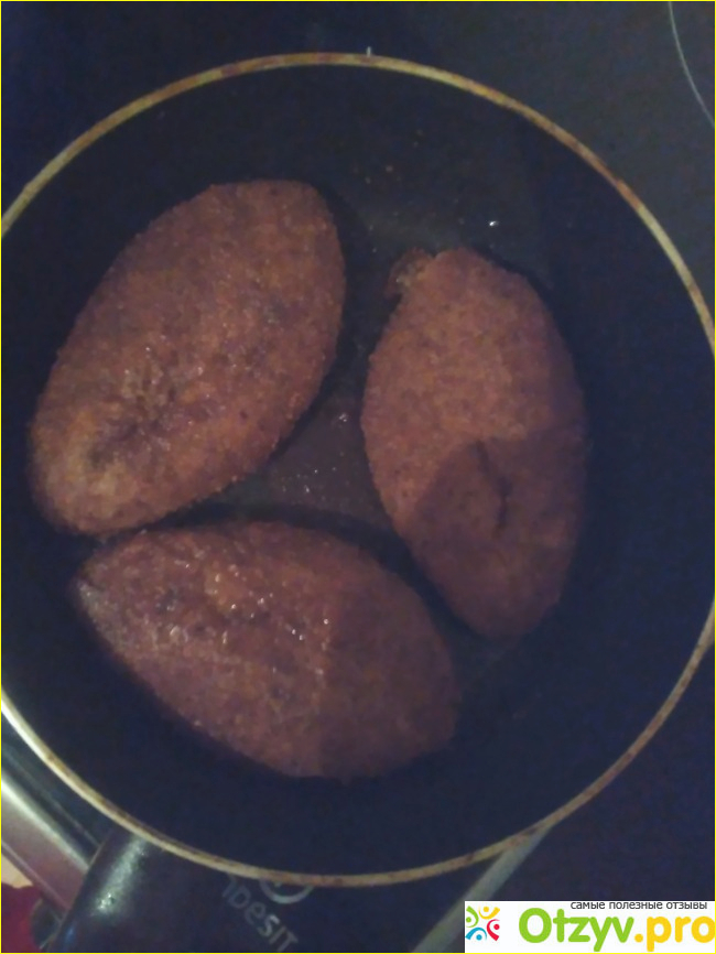 Сегодня к вечеру мой супруг попросил поджарить этот шницель особый на пробу я не долго думая начала его приготавливать и жарить на сковородке, предварительно добавив масла подсолнечного. Окащалось этого делать было не нужно, так как этот шницель оказался очень при очень жирным. Ну вот, как говорится не приготовишь не поймешь этот продукт. Просто я подумала, что котлеты в паниров оных сухарях будут сухими без использования масла и при горят, оказалось, что это не так. Вот так выглядят котлеты в жареном виде.