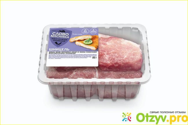 Из мясного шницеля я обычно готовлю что-то типа отбивных. Покупаю от фирмы слово мясника в охлаждённом виде. К внешнему виду и качеству мяса претензий нет.