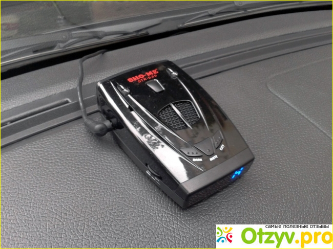 Теперь предлагаю рассмотреть радар. Размер не большой, чуть больше стандартной пачки сигарет. Корпус изготовлен из высококачественного плотного прочного пластика. А верхняя часть из такого приятного глянцевого мерцающего пластика, как будто покрыта лаком с мерцанием. Обратная сторона просто матовая черная. Установите радар Sho-Me str 535 в автомобиль, есть два варианта. Первый-с помощью прилагаемого скотча, который крепится к приборной панели двухсторонним скотчем. Второй вариант более достойный - с помощью двух присосков, прикрепленных к радару, включить бампер, и выглядит это так:Что касается этих присосков, то я сам не думаю, что они самые надежные. Они довольно маленькие и не глубокие, а потому если на улице холодно или не "додавит" при установке то они летают во время движения, что иногда и происходит. Надеть и добавить их на дно стакана, который расположен под большим углом, не особенно просто. В верхней части есть небольшой динамик (слева от центра), кнопка регулировки яркости дисплея (темный), кнопка регулировки звука оповещения и регулировки уровня чувствительности (немой), а также кнопка настройки режимов работы (Город). Там же есть кнопка, нажав на которую можно отстегнуть радар с кронштейна и взять его с собой, не вводя в искушение вора автомобилей. На левой стороне радара видим входной шнур питания и кнопку включения/выключения, регулятор громкости (№2). Я не знаю, почему их невозможно разделить по отдельности, поэтому это два в одном дизайне. чтобы повернуть радар-детектор, поверните колесо по часовой стрелке (в сторону сверху), чтобы повернуть в противоположную сторону, и все до Тихого щелчка. Номер после этого отрегулирован делать любого направления "к вкусу".