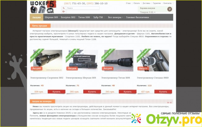 Далее уже стал остро вопрос покупки, и так как не по наслышки знаю что в интернет магазинах приличный выбор шокеров, стал таковые предложения искать. Ну и вот среди предложении которые я нашла было и то от фирмы Шокер 5, как раз у них приличный ассортимент предложения и вполне себе приличное качество продукции. Ну а вот заинтересовали меня конкретно несколько моделей электрошокеров, и после разговора с консультантом по номеру телефона (095) 386-10-10, остановить я решил свой выбор на модели электрошокера Спецназ 8810. Во первых у данной модели более мощные аккумуляторы, к тому же эффективность работы по более будет. За доставку заплатил еще 35 гривен, курьер привез после работы. Магазин мне приличным показался, я лично остался им доволен.