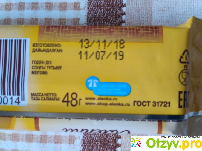 Весит батончик "Аленка" 48 грамм. Стоит шоколадка Аленка 18 рублей. Конечно цена будет варьироваться в каждом магазине, но я купала за такую цену в Fix Price. Шоколадка "Аленка" с вареной сгущенкой хранится 8 месяцев. Дата указана сзади упаковки.