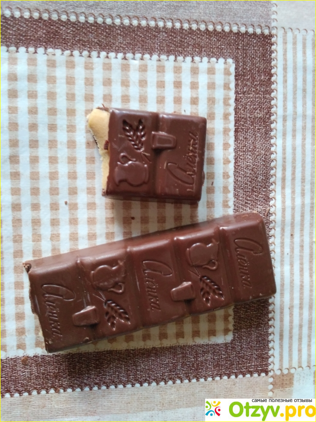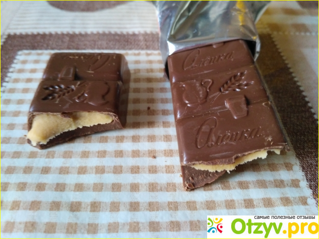 Сверху батончик покрыт шоколадом, не имеющего вредных веществ. Вкус напоминает детство.