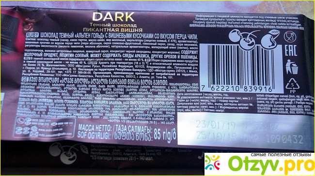 Итак, Шоколад Alpen Gold Dark Пикантная вишня.