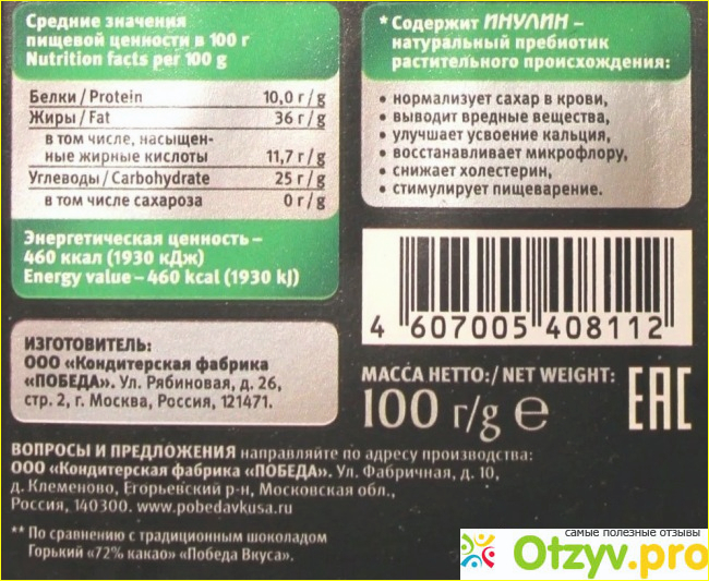 Полезная диковинка.Итак, свой первый шоколад без сахара попробовала, купив в магазине лакомство не нашего производства. Цена его кусалась знатно, если сравнивать с простыми и привычными шоколадками, но уж очень хотелось попробовать, что это за зверь такой. В целом, вкус мне понравился. Это был обычный шоколад, без всяких добавок и примесей, с ярко выраженным вкусом, слегка терпковат, но от того его кушать меньше не хотелось. Потом же столкнулась и на "наши" плитки шоколада и считаю, что на вкус они не хуже заморского. В частности, мы всем семейством подсели на шоколад "Победа" - молочный, темный и горький. попробовала все три, но понравился больше всего молочный, как более мягкий. нежный, хотя и в нем чувствуется та доля настоящего какао, о которой в обычном шоколаде стоит только мечтать.