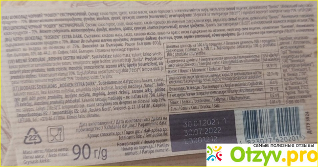 Состав этого продукта простой , содержание какао продукта не менее 70% . Это значит , что шоколад может быть горьким и не стоит от него ждать сладости.